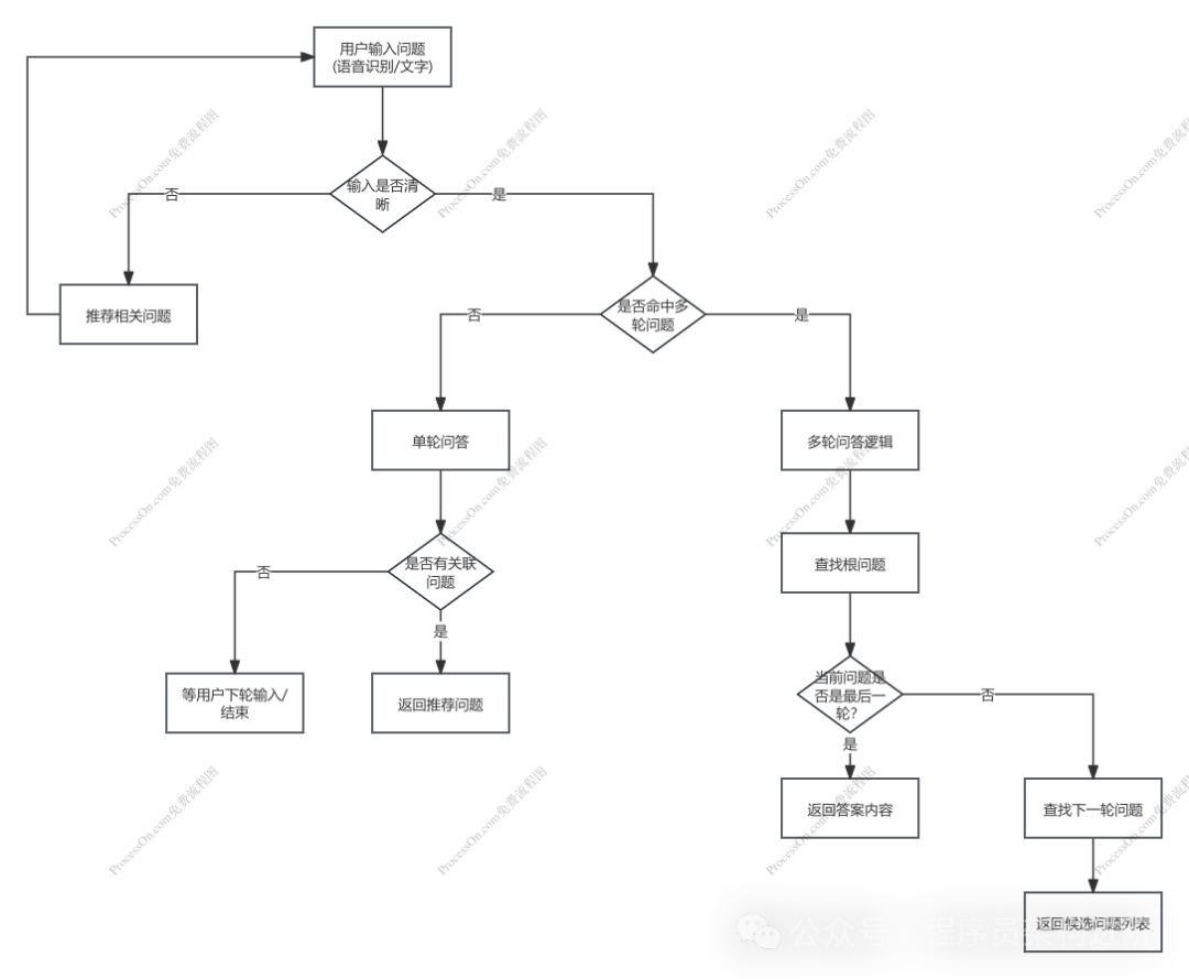 在接收到用户输入后,需要进行语义理解并到知识库中查找匹配的资料,如果找到匹配问题,那么取出回答返回;如果用户的问题模糊,还需要给出相关的推荐问题;例如问电视价格,需要追问品牌、型号、尺寸;考虑到更加真实的场景,不能只是一问一答的模式,在回答完用户的一个问题之后还可以给出相关的下一轮问题,便于用户追问。例如其他用户在询问某个型号的电器参数后,倾向于继续问价格、或类似的产品信息,那么这些问题就可以作为下一轮的推荐问题,引导用户继续提问。
