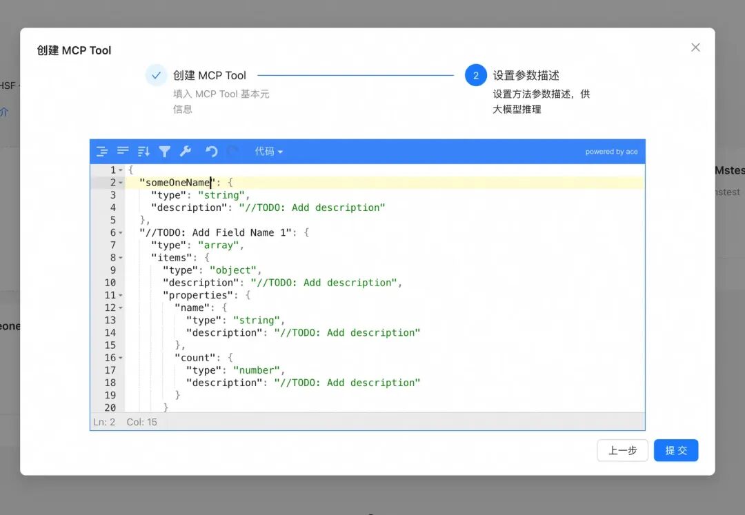 - MCP 控制台:AI 应用研发同学创建和维护 MCP server/tools/prompts 的平台,提供工具托管、调试、编排能力。