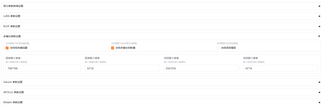 如果微调多模态模型,视觉编码器和多模态投影编码默认是冻结的,只微调语言模型。