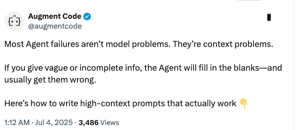 Augment Code 在X上的这组帖子强调: