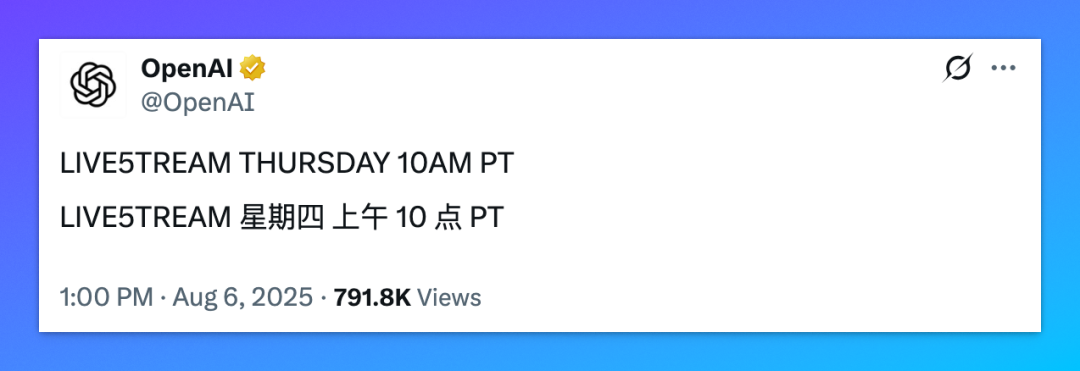 从“5”藏在 Stream 里,到 Sam Altman 最近各种赤裸裸的暗示,基本可以坐实:本周四凌晨,我们就能看到GPT‑5正式亮相。