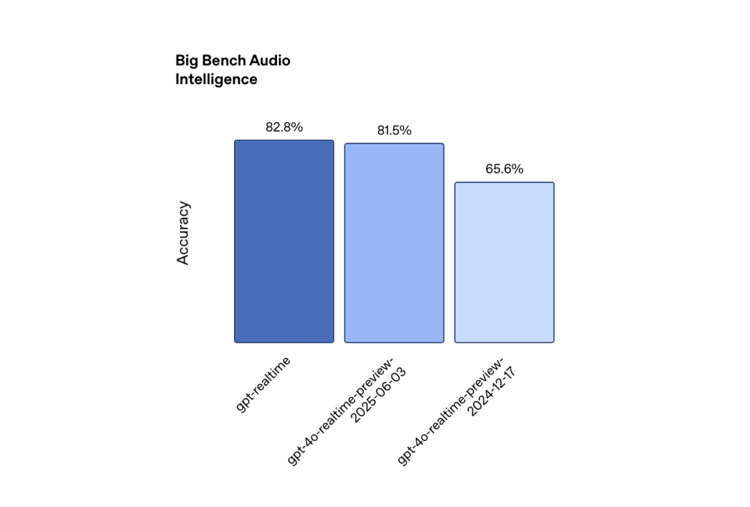 • Big Bench Audio 推理测试中,准确率达到 **82.8%**(上一代仅 65.6%);
