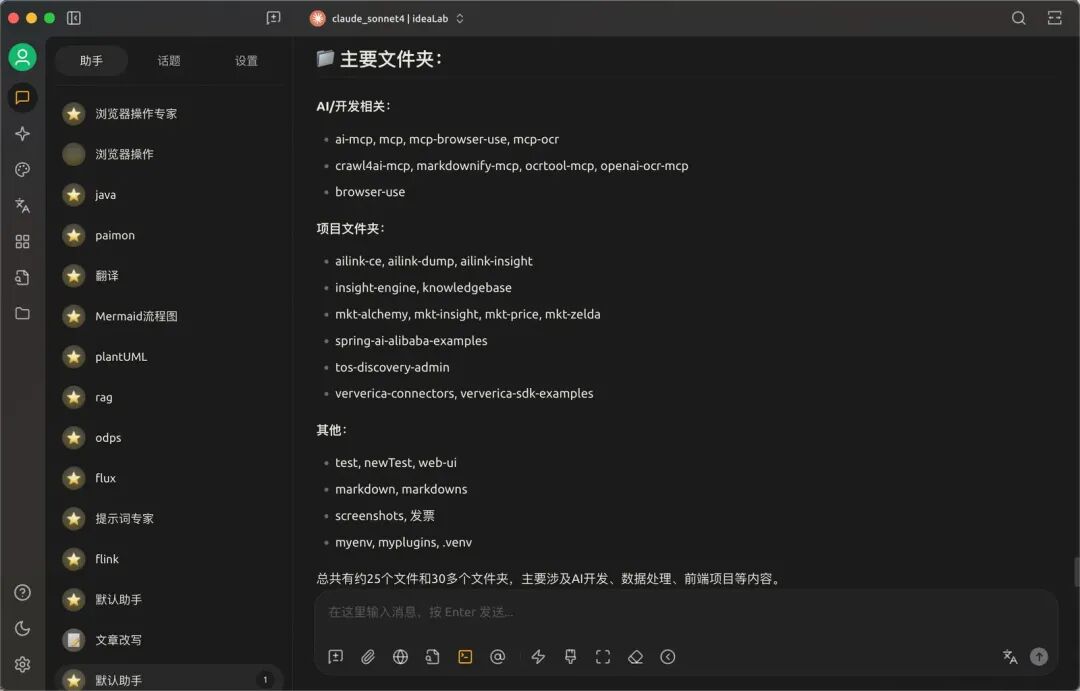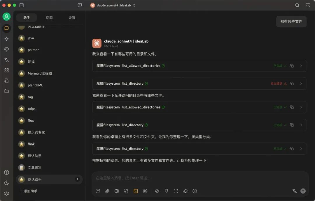 5.点击“助手”,选择配置的模型,测试连通性。