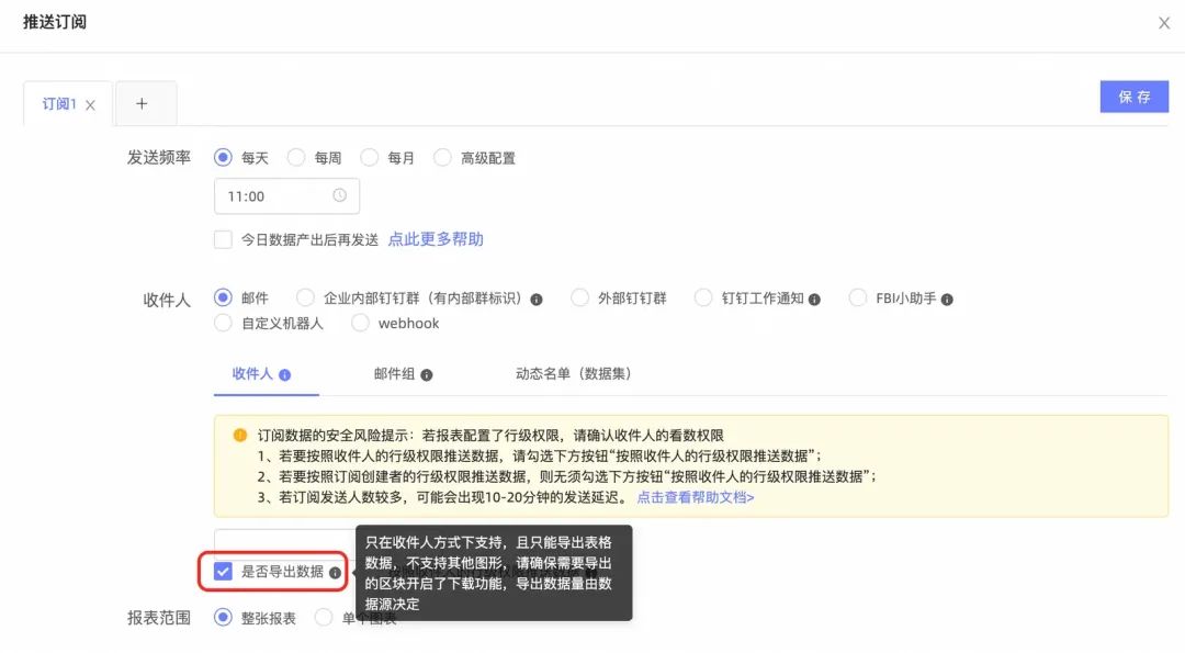 • 表格类型报表只能播报图片,若要导出报表数据,只能选择「邮件格式」并且只能把数据导出为excel格式。若用工程(编码)处理,需要对每一个表格类型定义接收对象。