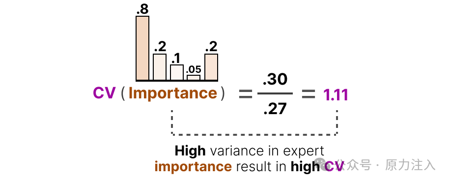 基于此可计算变异系数(CV),用于量化不同专家单元间重要性评分的离散程度。