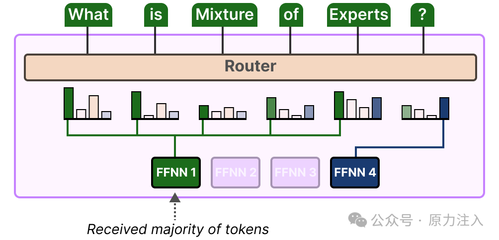 Mixtral 8x7B论文提供了典型范例,论文中每个文本标记均按首选专家单元进行颜色编码。