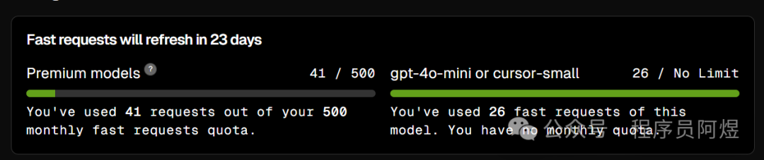 一个月20刀,国内还是不能充值的(当然我想办法买了一个月)。更离谱的是什么呢?像一些高级的模型,比如说claude,deepseek-r1只有每个月500次的快速请求,超过这个额度就只有慢速请求了,也就是说,当大多数人在访问这个模型的时候,你就会卡住用不了。