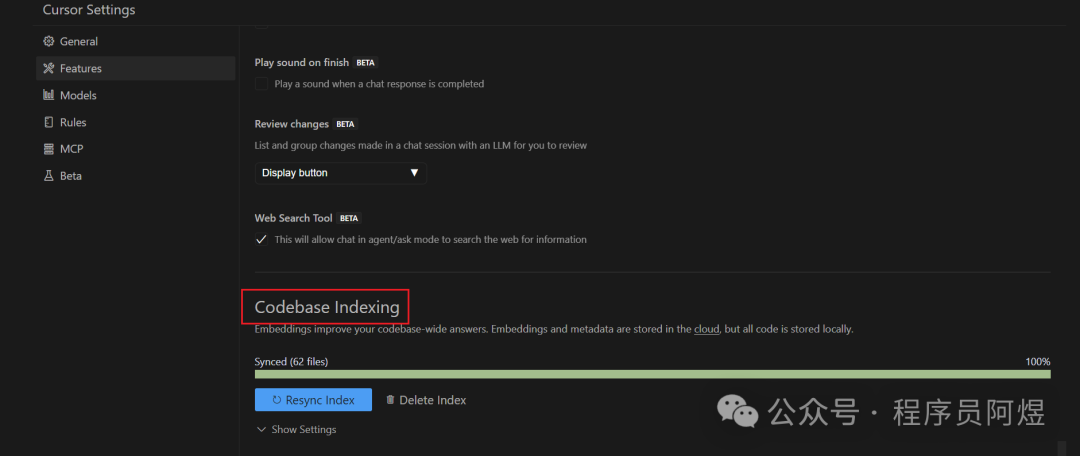 最让我惊艳的是,如果打开CodeBase索引,你可以告诉cursor让它搜索Codebase,cursor可以分析你整个代码库来理解你的项目,能够生成符合你项目的代码。