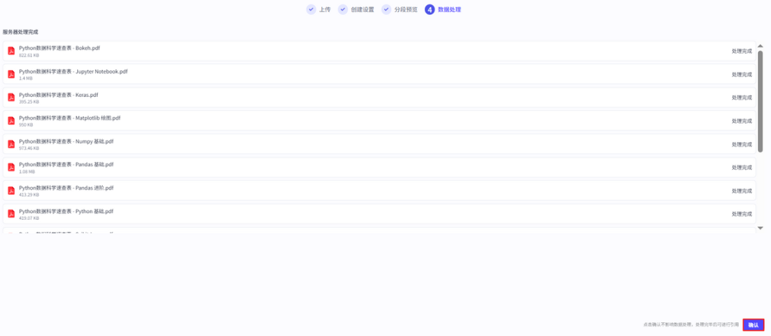 然后把本地的文档拖进去,这里我选择一些本地的Python数据科学速查表PDF文档,点击下一步。