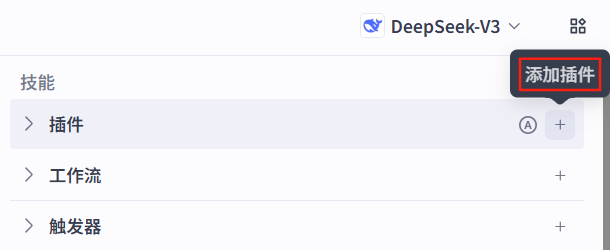 接下来添加知识库,点击文本右边的加号,添加知识库。