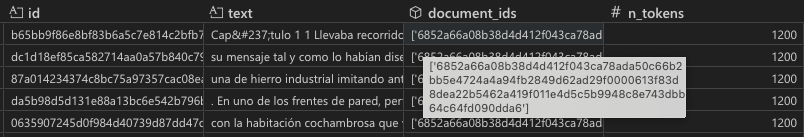 《Penitencia》书的前五个块。每个块长度为 1200 个标记,并具有唯一的 ID