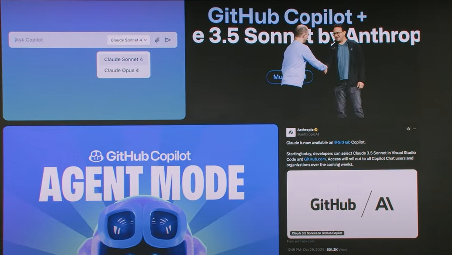另GitHub Copilot当前已支持Claude Sonnet 4 和 Opus 4 模型。GitHub推出采用MCP (Model Context Protocol),由Claude Sonnet驱动的异步“同行编程”的GitHub Copilot编程智能体,未来GitHub将集成 Claude Code 及其 SDK 到 GitHub 的 Agent 平台,为开发者提供更直观、高效的体验。