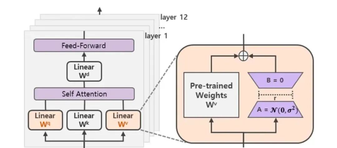 LoRA(论文:LoRA: LOW-RANK ADAPTATION OF LARGE LANGUAGE MODELS),该方法的核心思想就是通过低秩分解来模拟参数的改变量,从而以极小的参数量来实现大模型的间接训练。(秩是矩阵中最长的独立行数或列数)