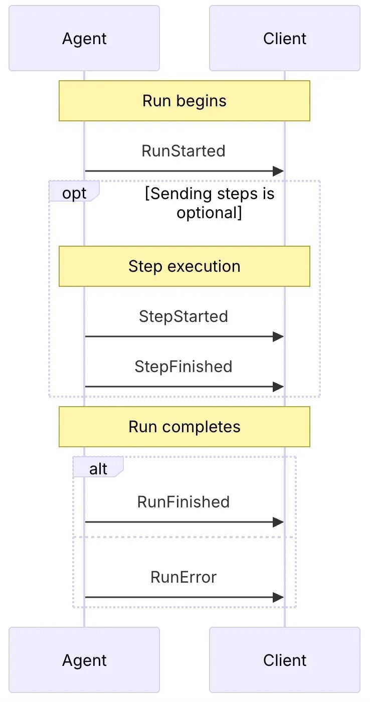 • 生命周期事件(如RUN_STARTED,RUN_FINISHED),监控Agent运行进度。