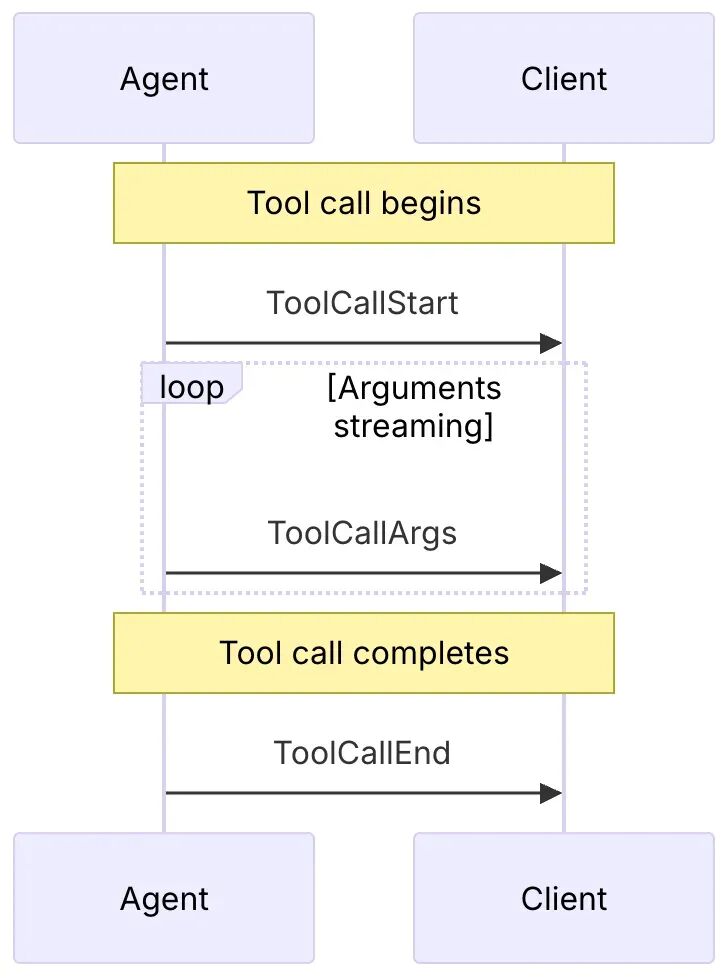 • 工具调用事件(如TOOL_CALL_START,TOOL_CALL_ARGS,TOOL_CALL_END),管理 Agent 对工具的执行。