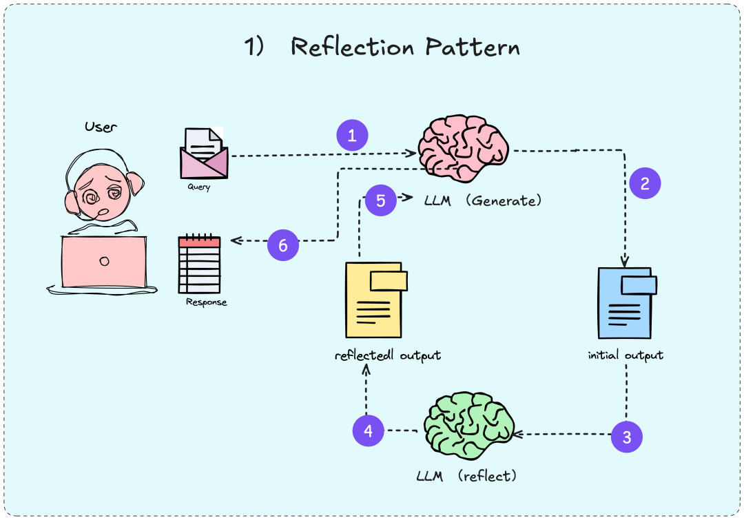 反思模式也映射了科学研究中的“假设—实验—批判—修正”循环。初步输出是“假设”,反思是“批判”,多轮迭代是“修正”,最终输出是“理论”或“结论”。