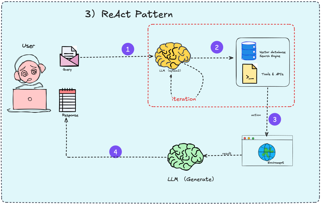 • 反馈与新一轮推理:模型基于环境反馈,进行新一轮推理,决定是否继续行动或生成最终答案。