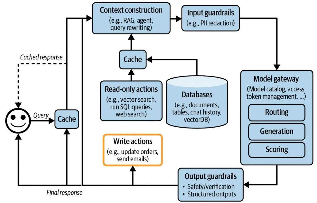 本文通过一条AI应用架构演进的路线(图来自《AI Engineering》),来描述和记录每一次演进增加的架构内容以及概述涉及到的相关技术,从而帮助自己以及有需要的同学按照一定的脉络整理LLM和AI应用快速发展下不断迸发的新设计和新技术,也为后续可能的关于AI应用架构和传统应用架构的异同的主题探讨做些调研。