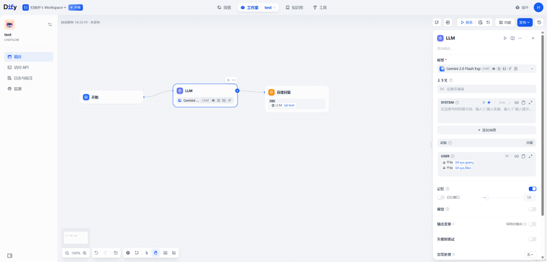 • model_provider: "langgenius/gemini/google"表示使用Google的Gemini模型