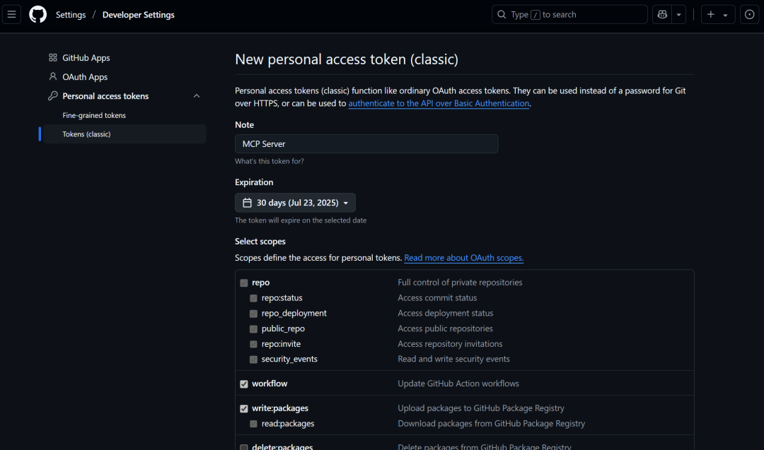 首先得先添加 GitHub MCP ,需要你先去 GitHub 生成一个 Token。