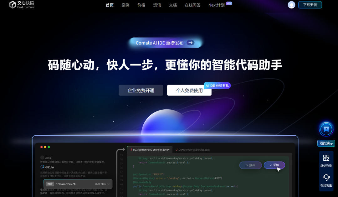 Comate (文心快码)是老朋友了,但今天,Comate 正式升级成了Comate AI IDE。