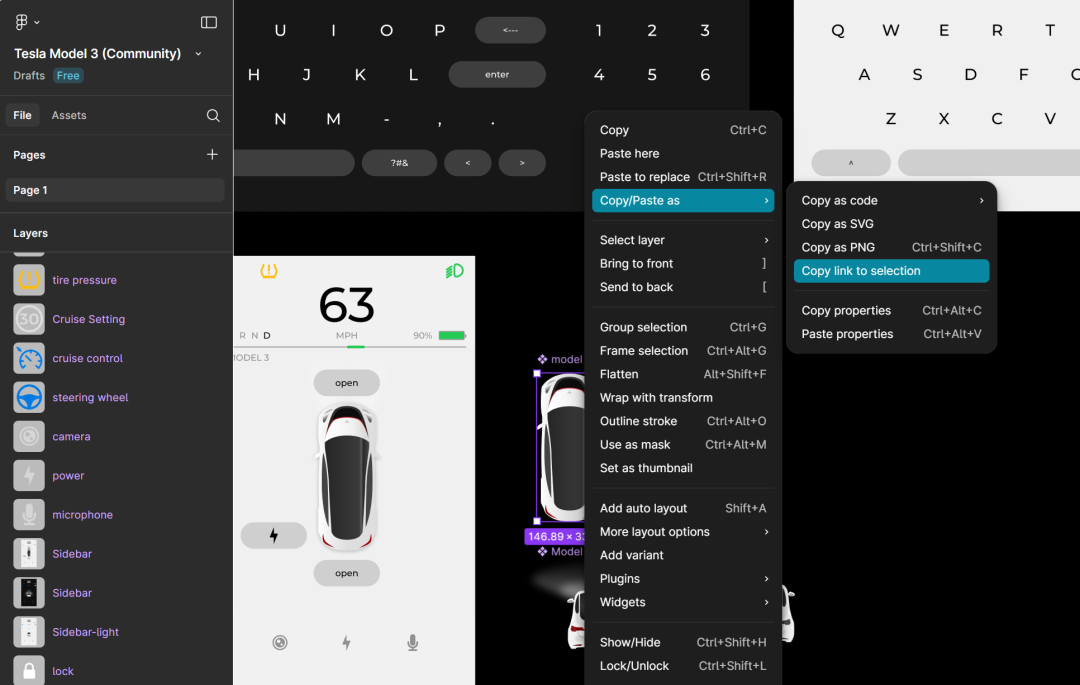我们先打开一个 figma 设计稿。选中你想要转成代码的组件,右键-Copy link to selection。