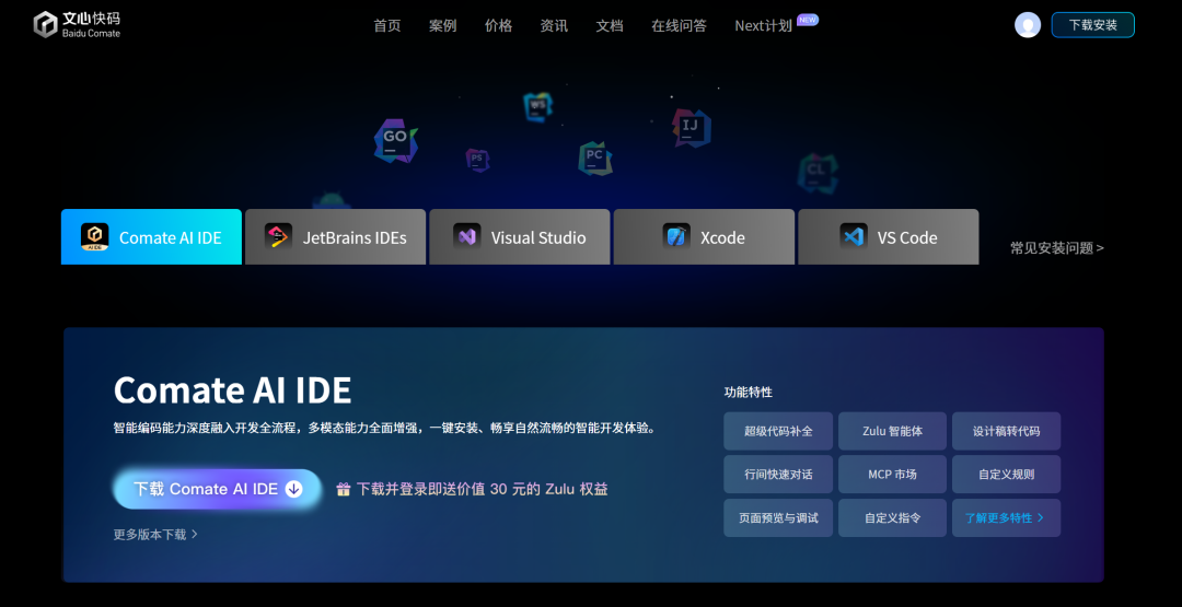 Comate AI IDE是国内首个多模态、多智能体协同的AI 原生 coding IDE。