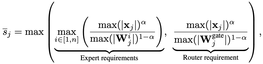 • 将专家权重和 Router logits 这两个方向的最大缩放需求聚合在一起;