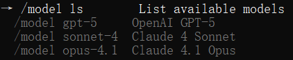 登录后,你就可以在命令行里使用各种强大的模型了,同样也包括了最新的 GPT-5。