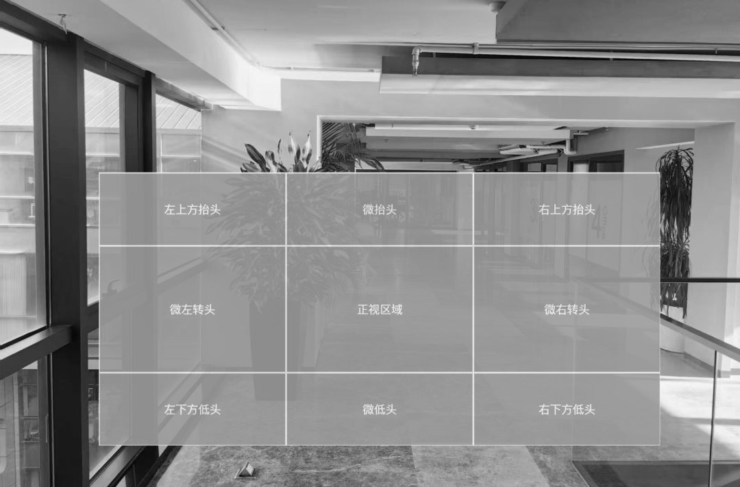 由于目前的glasses是轻量化设计,不能像vision pro那样增加眼动传感器来追踪用户视觉焦点,因此可以利用3Dof的显示锁定能力,识别用户的头部运动,简化识别方式后预计可以有9个可以识别的区域。