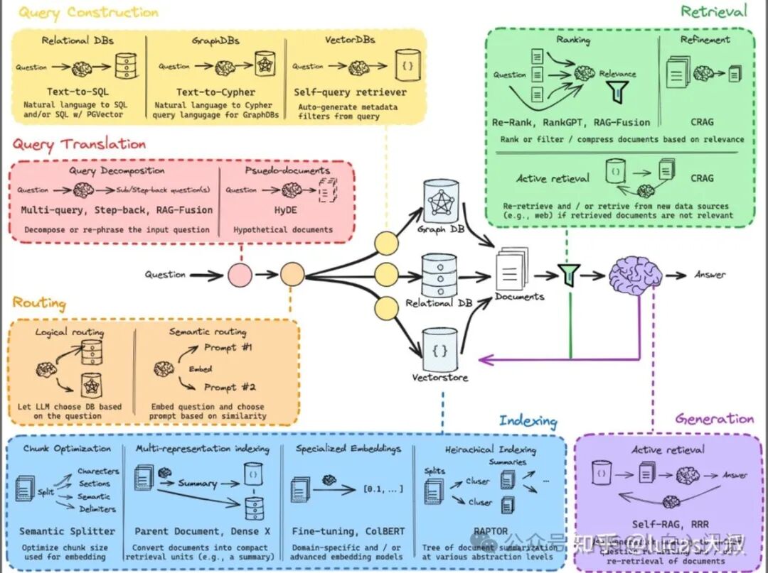 下图汇总了RAG全链路上各个环节可应用的技术,可以看到林林总总的还不少,接下来我们会用一个系列对图中的每项技术进行讲解和代码实践。有条件的同学可以follow 视频教程。