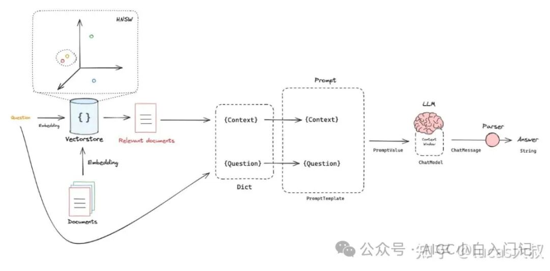 将retriever检索到的候选文档和query与prompt一并扔给LLM,让它根据prompt中的指令生成答案,生成的答案再用parser解析成人类方便阅读的格式。
