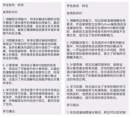 最后该 Agent 将自动发送学习报告到微信。(这个 Agent 使用的是全自动化的 ReAct 算法,会自动加载4个外部工具,包括通过姓名获取学生id,根据学生id获取企微用户id,根据学习过程撰写报告,发送学习报告到企微用户id。)不同认知能力学生的评价结果不同,而且关注到到了学习过程中的细节,并非来自幻觉的胡言乱语。