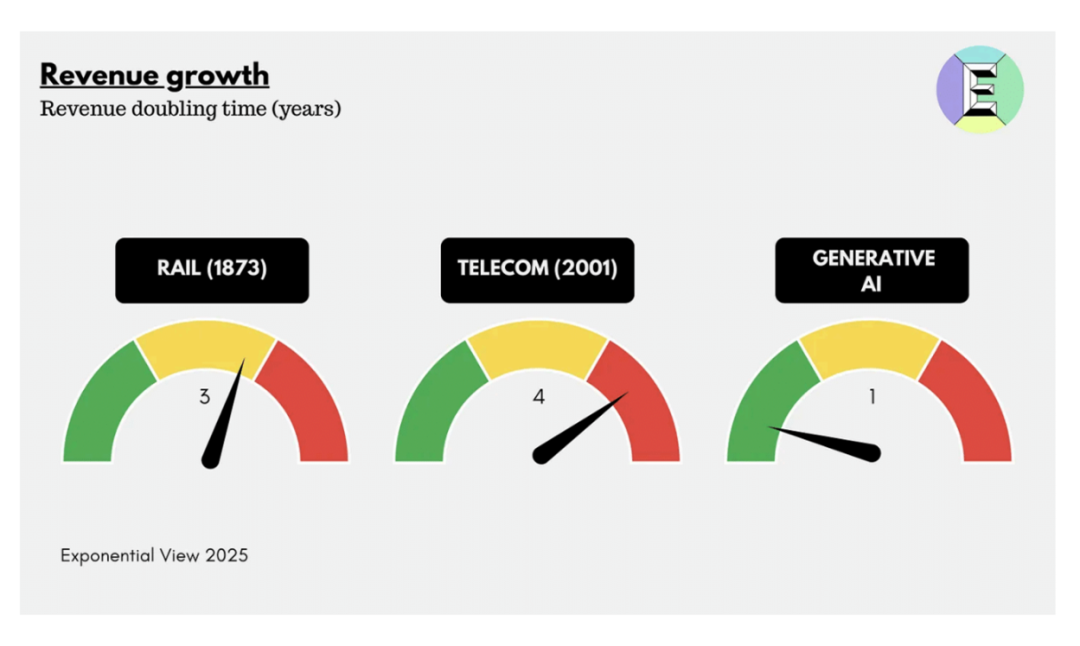 Is AI a bubble? - by Azeem Azhar and Nathan Warren (Sep 17, 2025) AI是否泡沫,或者说是否会进入泡沫?这将是未来多年一直会被讨论的话题。科技创业者、作家Azeem Azhar提供了一个很好的框架,用来对比历史上两次巨大的基础设施投资泡沫:铁路、电信和互联网。作者用五个仪表盘来实时观察AI投资的水温,结论是尚未进入泡沫,但要重点警惕GPU的快速折旧问题,以及未来数据中心的融资结构/资金质量问题。(过去两周已经有投资者戏谑那祖传的1000亿刀,在模型、云和GPU之间转悠)。我大概看了一下简中网还没有翻译,如果是首发送给读者存念收藏,未来几年不断拿出来对照。另外让AI干活还是得盯着,不知道为啥有一处把Nvidia翻成了黄兆龙,真是无厘头。---
