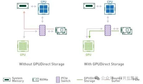 GDS 是 GPUDirect 家族的最新成员。与支持两个图形处理单元 (GPU) 内存之间的直接内存访问 (DMA) 路径的 GPUDirect 对等访问和支持向网络接口卡 (NIC) 的直接 DMA 路径的 GPUDirect RDMA 类似,GDS 实现了 GPU 内存和存储之间的直接 DMA 数据路径,避免了通过 CPU 的缓冲区跳转。这种直接路径可以增加系统带宽,同时减少延迟和 CPU 与 GPU 的利用负载。