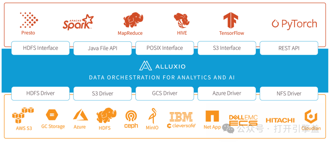 除了 JuiceFS 还有 Alluxio。Alluxio 严格来说不是一个文件系统,而是构建在其他分布式文件系统之上的分布式缓存系统,在大数据领域使用非常广泛。