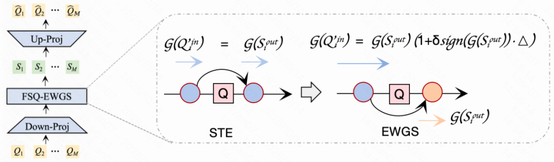 ingFang SC", system-ui, -apple-system, "system-ui", "Helvetica Neue", "Hiragino Sans GB", "Microsoft YaHei UI", "Microsoft YaHei", Arial, sans-serif;font-size: 17px;font-style: normal;font-weight: 400;letter-spacing: 0.544px;text-align: justify;text-indent: 0px;text-transform: none;word-spacing: 0px;white-space: normal;line-height: 1.6em;margin: 0pt 0px;padding: 0px;outline: 0px;max-width: 100%;font-variant-ligatures: normal;font-variant-caps: normal;orphans: 2;widows: 2;-webkit-text-stroke-width: 0px;background-color: rgb(255, 255, 255);text-decoration: none;caret-color: rgb(0, 0, 0);color: rgb(0, 0, 0);visibility: visible;box-sizing: border-box !important;overflow-wrap: break-word !important;">1.FSQ量化:以 Query 为例,Query 侧拼接多组可学习的 Token,经过 Encoder 编码产出多组稠密向量,经过 FSQ 量化为离线语义 ID。