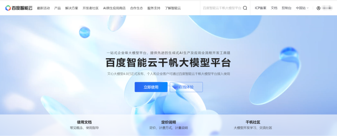 第二步:进入“百度智能云千帆大模型平台”页面。