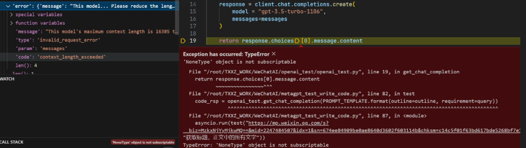 虽然我们上面通过 get_outline 对HTML内容进行了精简,但还是存在超过大模型 Token 数限制的情况,这种情况就无法生成爬虫代码,而是报下面的错误: