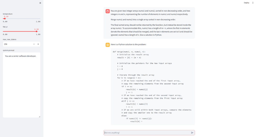 现在,我们可以向聊天机器人询问一些与编码相关的问题。