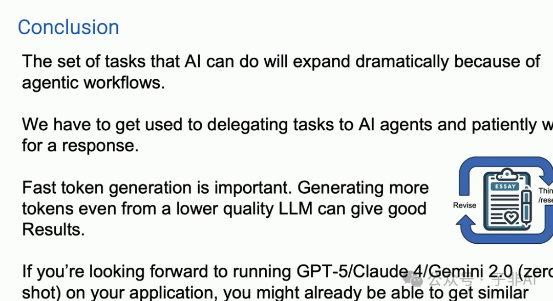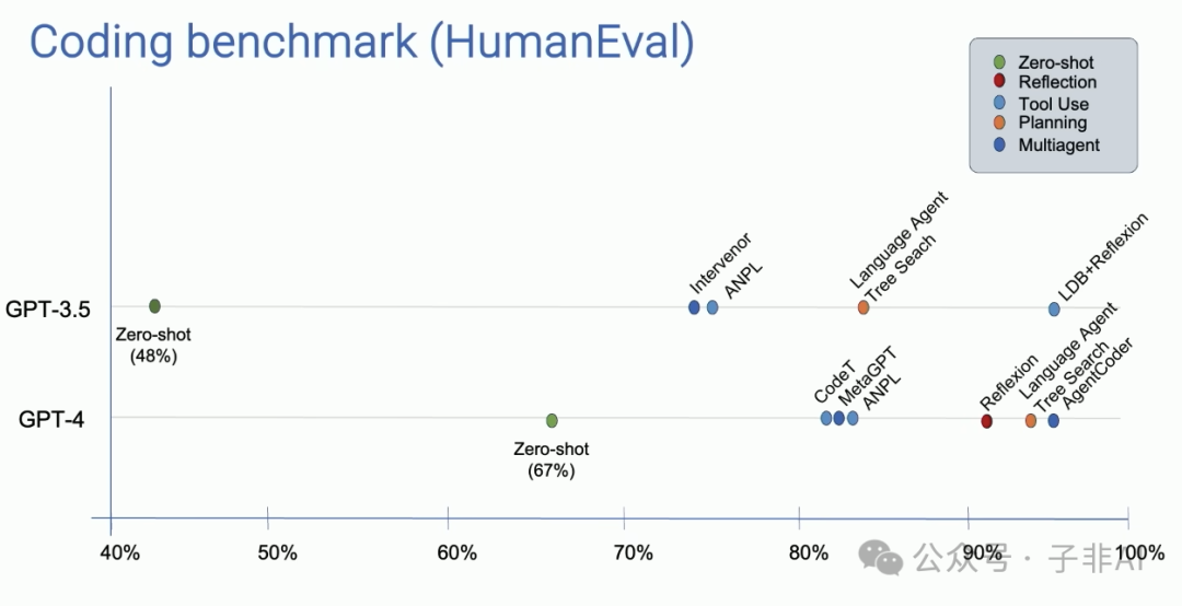 • AI代理可以通过迭代和反馈不断改进其输出,从而获得更高的性能。Andrew Ng团队的案例研究表明,使用代理工作流程的GPT-3.5模型在代码生成任务上的表现甚至优于GPT-4。