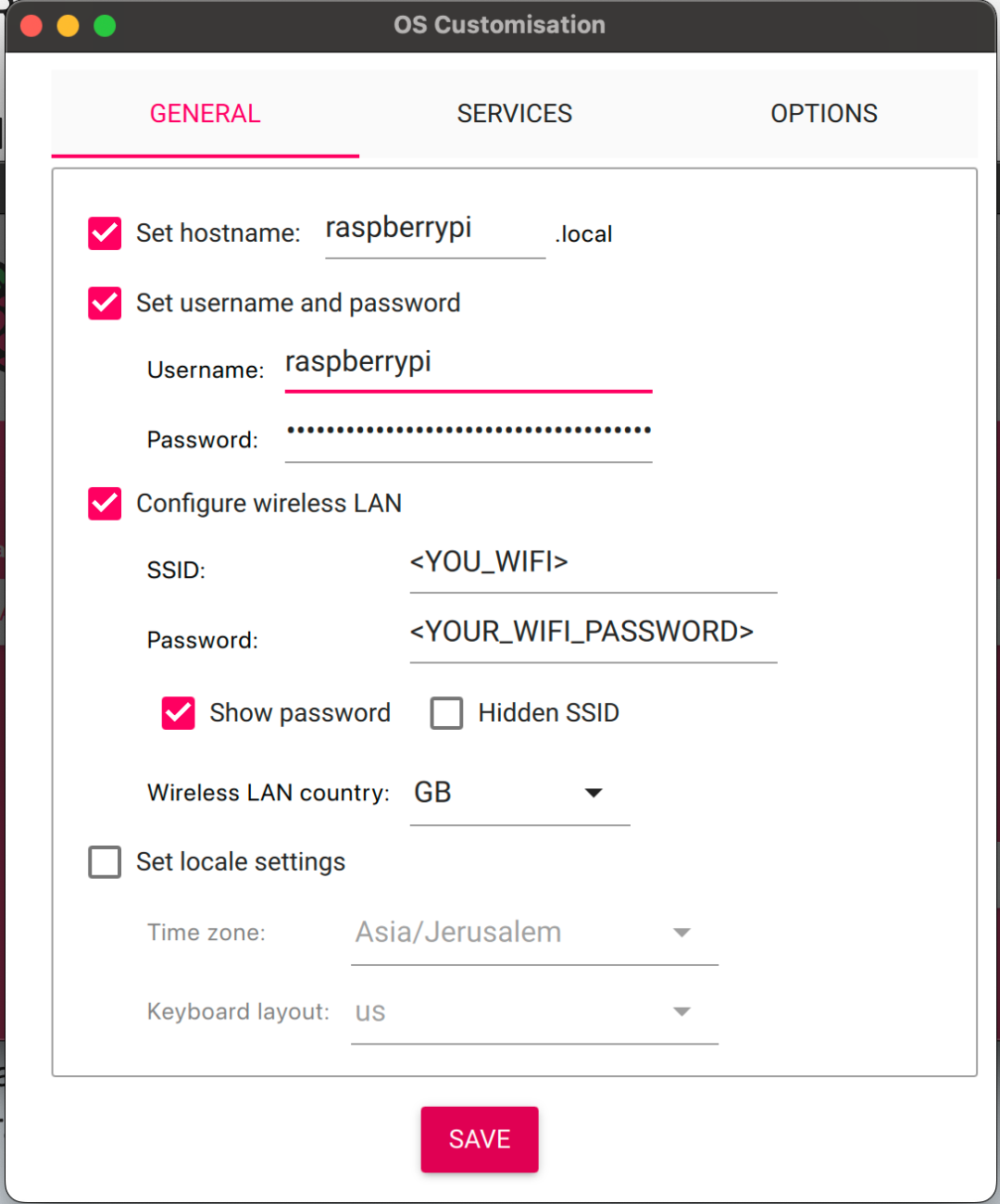 ssh ssh <YOUR_USERNAME>@raspberrypi.local