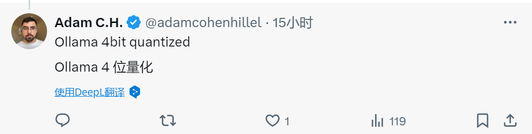 值得注意的是,由于移动设备、嵌入式系统或边缘计算设备的硬件资源有限,4bit 量化可以显著减少模型的大小和计算需求,使得在这些设备上运行大型模型成为可能。这位用户也使用了 4bit 量化推理 Llama3 8B。