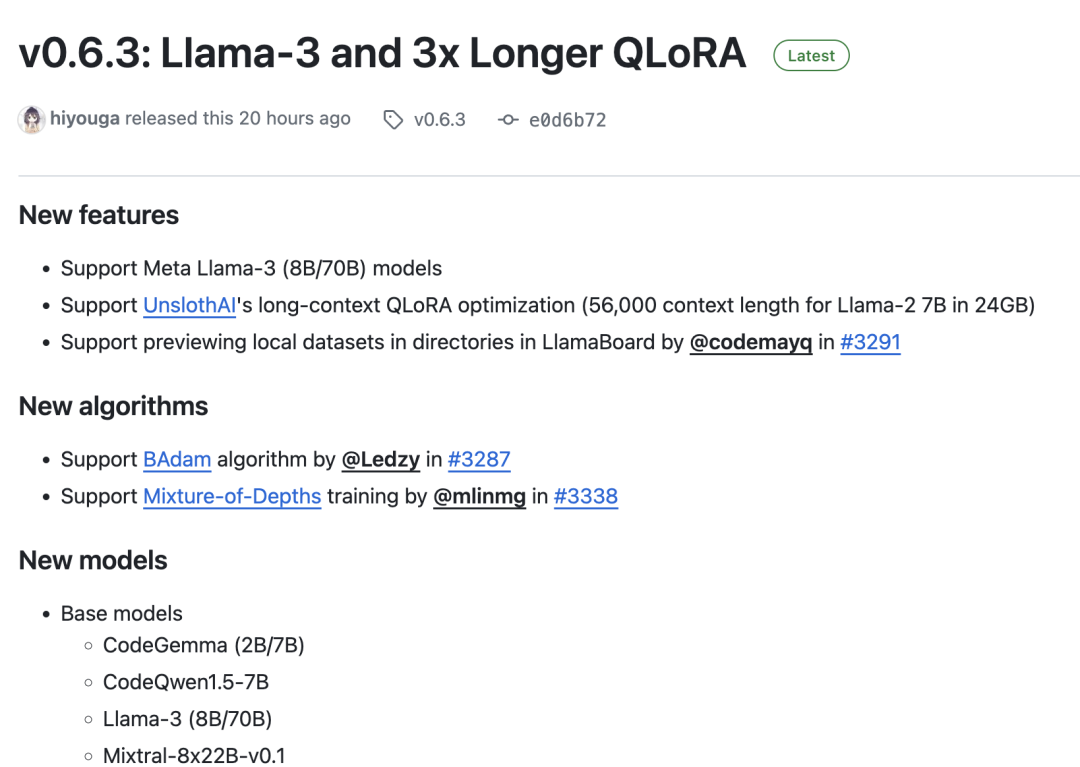 最近,大模型领域最受关注的事件就是meta发布了llama3,前段时间我们介绍的LlamaFactory也第一时间支持了llama3,并且发布了自己的Colab微调实战案例,并对外推出了两个社区中文微调版本: