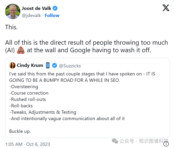 KG充当长期记忆的作用,并帮助我们区分我们所产生的内容。LLMs和KGs可以共同努力以增强各种内容生成应用。例如,在问答系统中,它们可以结合来自LLMs的背景的信息和KGs的信息生成准确、简洁、全面的答案。 在对话系统中,它们可以利用LLMs的对话历史和KGs的用户配置文件产生相关、一致和丰富的回应。此外,它们可以利用LLMs的输入文本和KGs的重要信息为文本摘要生成忠实、简洁和突出的摘要。在SEO中构建AI代理时,它们可以教会如何回答问题,而不是预测相似句子。 保持在可扩展内容生产中的“人在回路” 在WordLift,我们主张人类监督和控制的关键作用,尤其是当内容生产达到成千上万篇时。我们的方法超越简单的自动化,重点放在知识图谱(KG)中数据的精细建模以及对基础本体进行策展和完善。 通过确定用于生成动态提示的关键属性,我们使公司能够训练定制语言模型,以保持对其内容质量和相关性的牢固控制,同时满足严格的编辑标准。 Tony Seale - 预发布在 Linkedin 上 在我们的开拓性方法中,我们正在进入内容创作者和人工智能工具之间的关键战场。当前的情况是这些工具大量生产出质量低劣的内容,威胁到搜索引擎和内容创作者之间的协议。