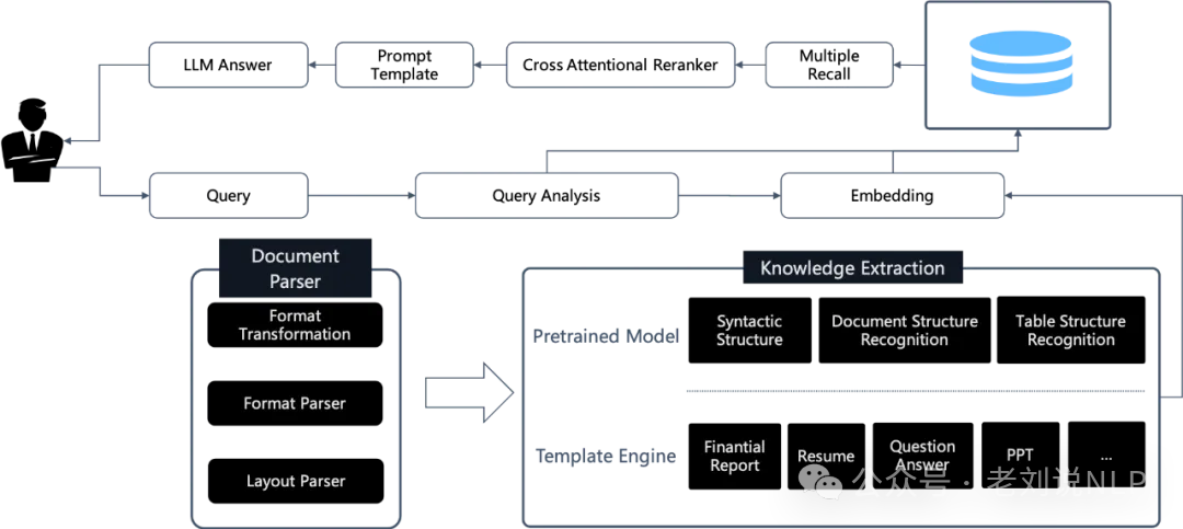 RAGFlow的最大特色,就是文档智能处理,其实就是加入了版式分析那一套(这块我们在之前已经论述过多次),包括版式分析、表格解析、文档重排等等。