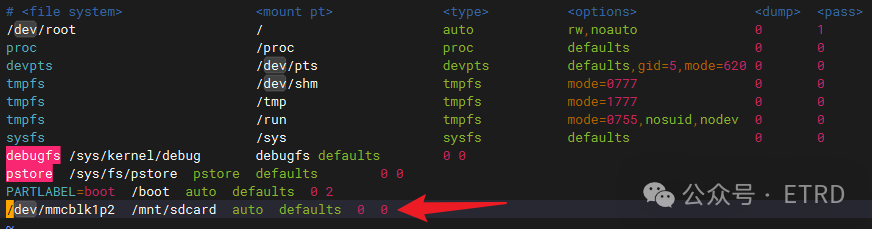 ingFang SC", "Microsoft YaHei", sans-serif;font-size: 14px;letter-spacing: normal;text-wrap: wrap;background-color: rgb(255, 255, 255);">由于插入sd卡之后,每次开机需要手动mount到/mnt/sdcard目录,为避免麻烦,可以配置开机自动mount: