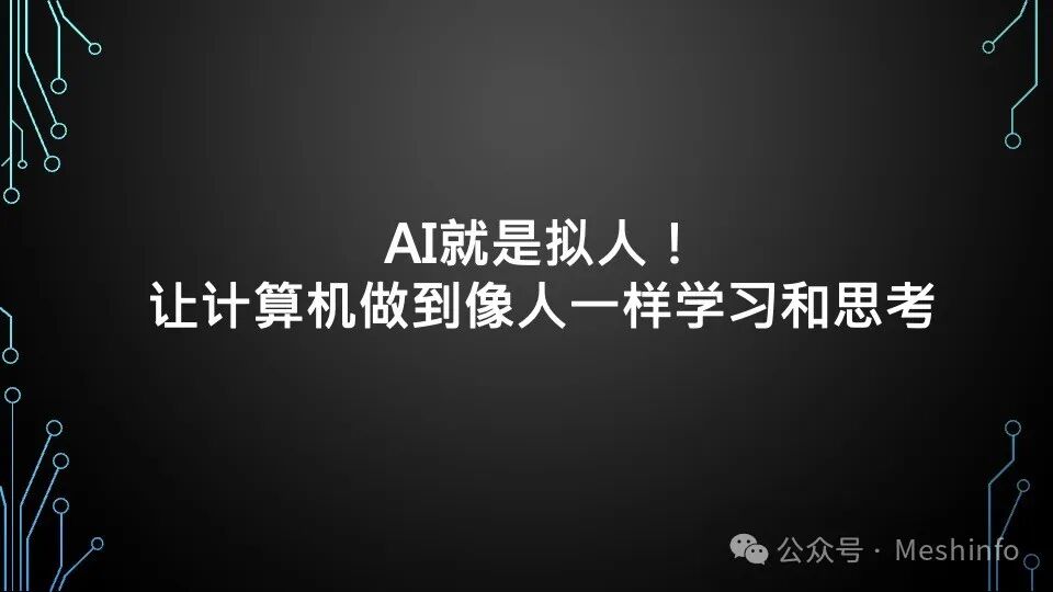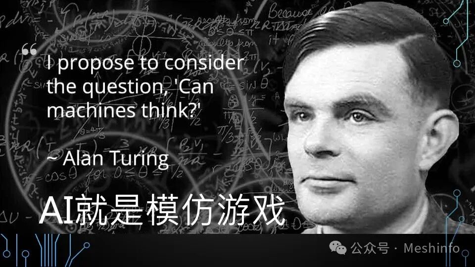 如果你惊叹于今天的AI的能力,但是又不太清楚人们是如何把它是如何制造出来的,那么可以回到AI的起点。1950年,人工智能之父——阿兰图灵第一次提出计算机是有可能学会像人一样思考的。它发表了《计算机器与智能 Computer Machinery and Intelligence》的论文,提出了这个观点,同时提出了著名的“图灵测试”来判断机器是否具有智能。这个观点非常重要,因为计算机最初的目的是用于"计算",如果看过电影《模仿游戏》,就知道图灵的一大功绩就是破译了德国人的密码。但是很少有人能够想到一台机器可以像人一样思考。它在论文中写到 "在大约五十年的时间里(从论文发表的1950年算起),人们将能够编程计算机(此计算机具有大约10^9字节的存储容量),使它们在模仿游戏中表现得足够好,以至于一个平均水平的审讯人员在五分钟的提问后,正确分辨出机器与人类的准确率不会超过70%。"