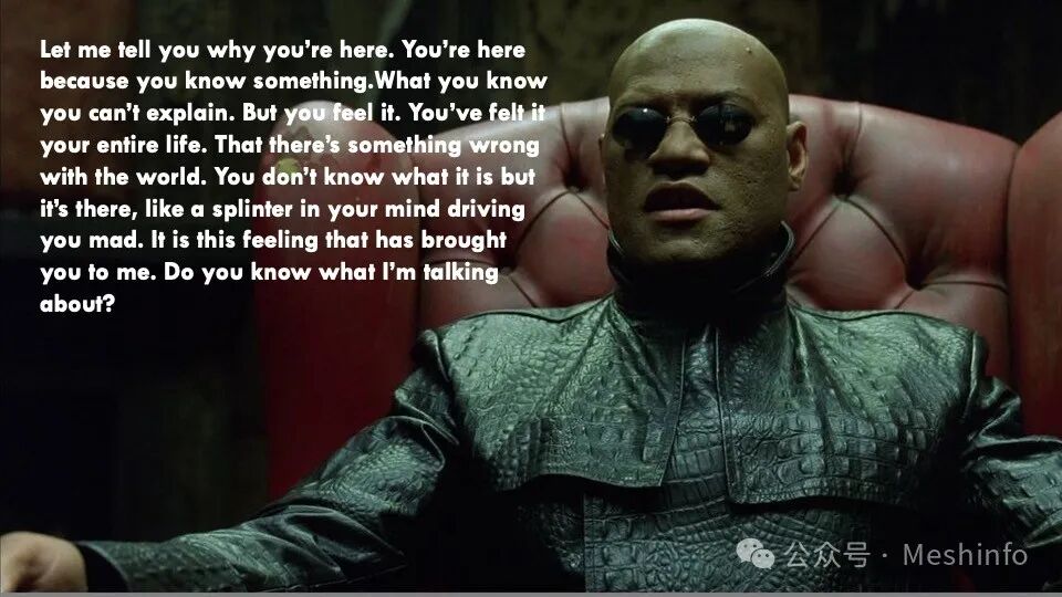 这是电影《黑客帝国》里墨菲斯第一次和尼奥见面时说的话,尼奥心中充满了各种疑惑,他感觉到事情有一些不对劲,所以一直在寻求答案。相信能够看到这篇文章的你也是一样,对AI,特别是类似ChatGPT的AI是如何工作的,将来会变得怎么样,会对自己产生哪些影响充满了好奇。但是不能直接告诉你ChatGPT的制造过程,所以如果花一些时间先了解一些基础,那么你理解它和其他AI就会容易得多。