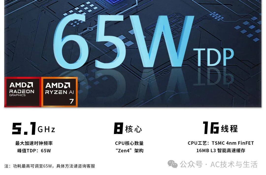 处理器 AMD R7 8845HS,具备强大的计算能力,适合执行AI相关任务